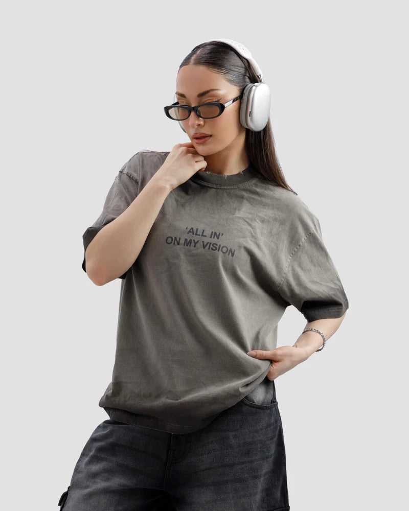 This Washed All In On My Vision T-shirt combines style with motivation. Crafted from soft, breathable fabric, it offers comfort for all-day wear. Its washed finish delivers a subtle vintage look, perfectly complementing the empowering message printed on the front. Ideal for those who want to express determination and focus through their wardrobe while enjoying a fit suited for everyday activities.